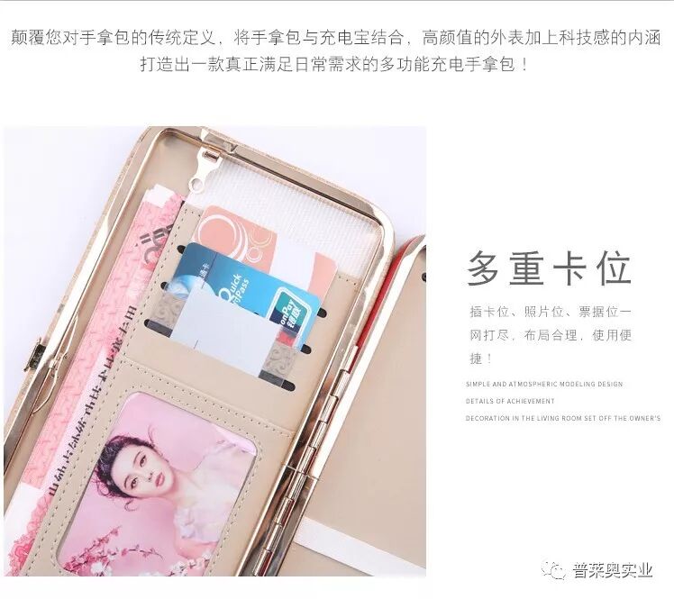 這款充電錢包比較適合女士使用,而其娛樂功能和充電功能成為它的內核所在,并且在還可以做成無線充電功能。