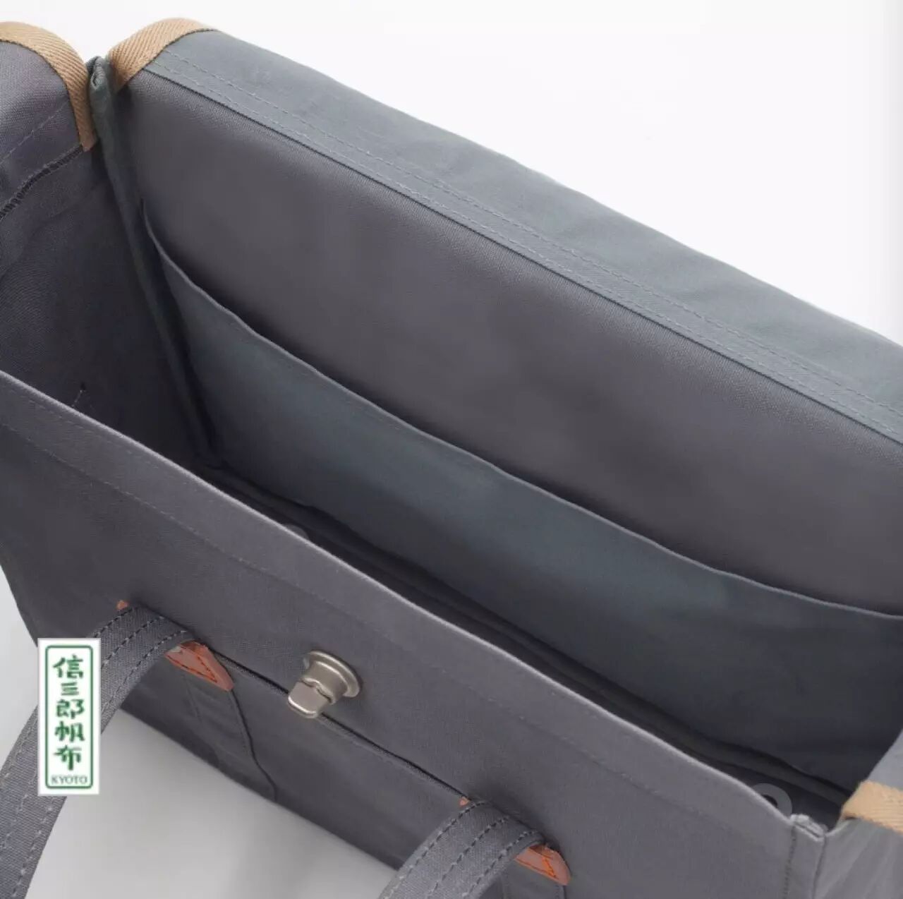 大熱款式是這個正面寫著“布包”的系列。包在日文里包寫作“鞄”。據說,這個字是明治時代東京一家皮包店設計的。信三郎就想,這個“革”字不適合他的帆布包,那他是不是也可以造一個字出來做品牌標志呢?自此“布包”系列就誕生了。