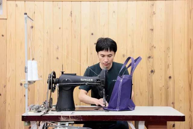 它的工廠在距離店鋪不遠的街巷拐角處。現存最老的匠人 94 歲。所有從店里賣出去的帆布袋,都可以終生維修……