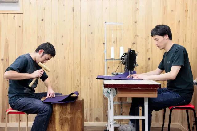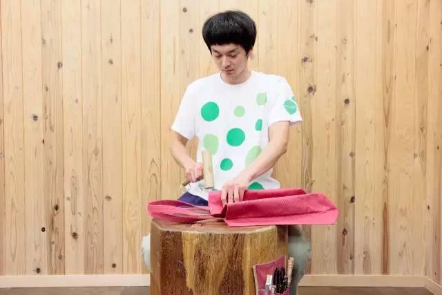 由于帆布厚且硬的特質,一澤家的帆布制品在裁剪之后和上縫紉機之前,會多出一個由木槌捶打成型的工序。